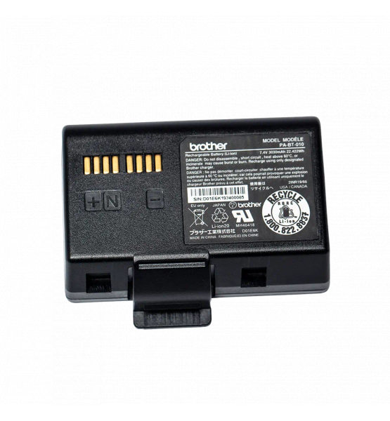 PA-BT-010 - akumulator smart litowo-jonowy firmy Brother. Monitoruje informacje na temat cykli ładowania oraz pozostałej pojemności. Kompatybilny z 3-calowymi drukarkami mobilnymi RJ.