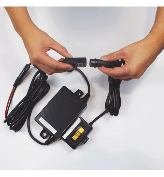 Brother PA-BEK-001WR to zestaw eliminujący użycie akumulatora, który współpracuje z drukarkami RJ-4230B i RJ-450WB. Eliminator podłącza się bezpośrednio do zasilania pojazdu, co umożliwia drukowanie bez konieczności martwienia się o żywotność baterii.
