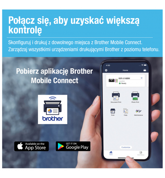 | Łączność mobilna i internetowa | Brother Mobile Connect (Android, iPad / iPhone), Apple AirPrint, Brother Print Service Plugin, Mopria®, Aplikacje Brother, Web Connect |