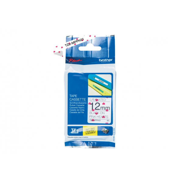 Taśma Brother TZEMPPH31 12 mm różowa w serca