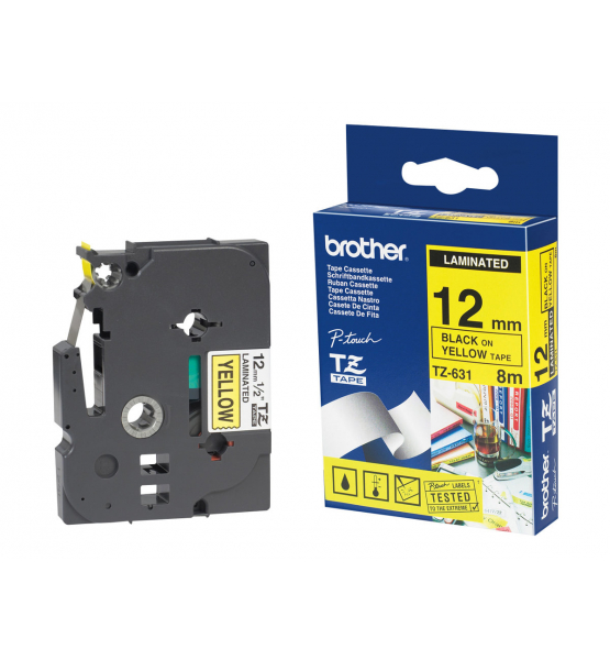 Taśma Brother TC101 12mm czarna na czystym