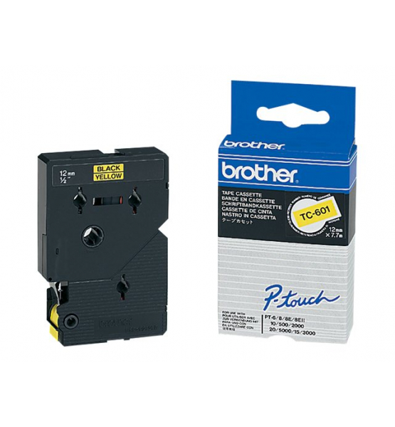Taśma Brother TC601 12mm czarna na żółtym